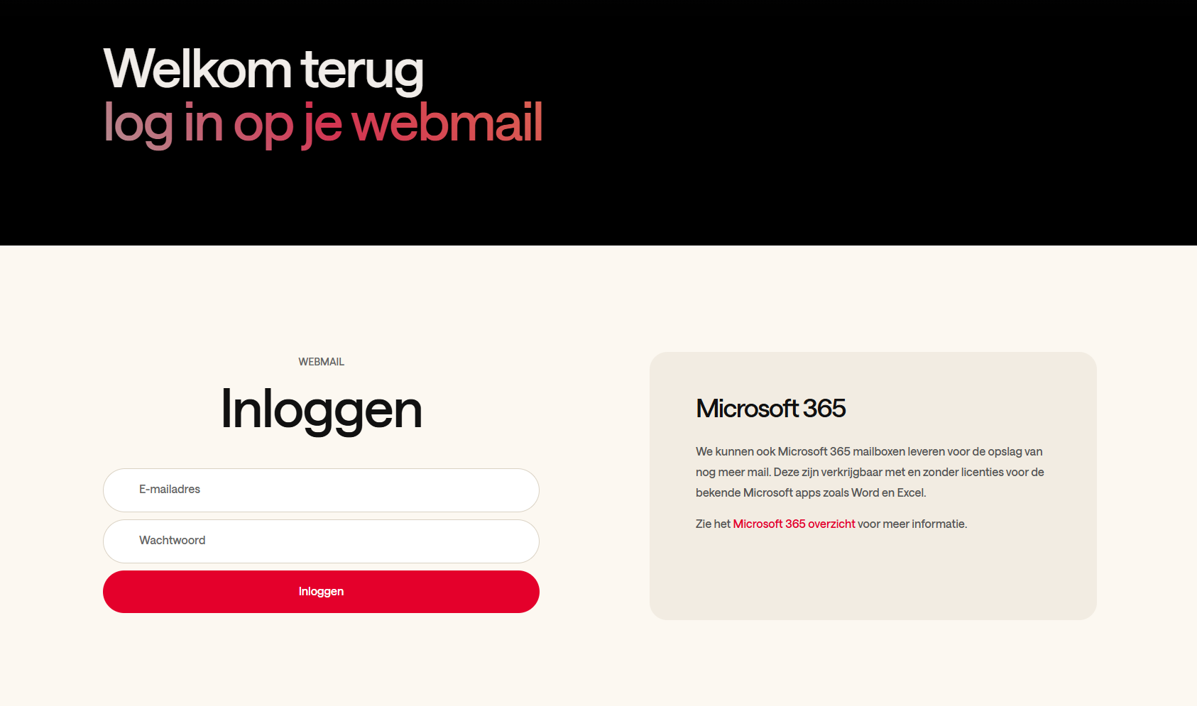Op deze pagina vul je het mailadres waar je op wilt inloggen in en vervolgens ook het wachtwoord wat bij dit mailadres hoort.
