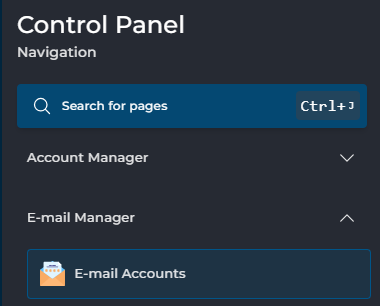 Hierna kies je links onder E-mail Manager voor E-mail Accounts: