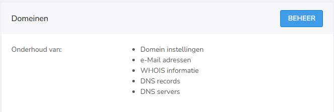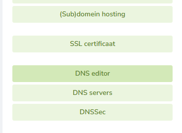 De DNS editor is te vinden door rechts bij domeinen te kiezen voor beheer:
