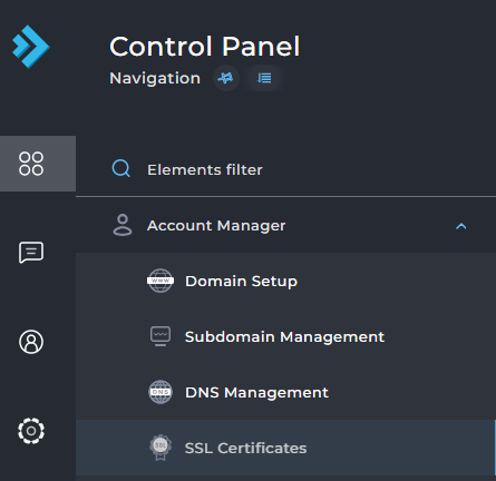Eenmaal in directAdmin kies je links onder Account Manager voor SSL Certificates: