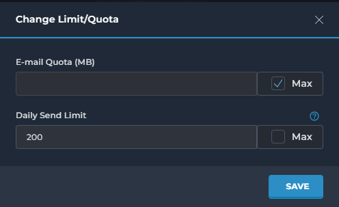 Je kunt daar ook max aanvinken dan is het ongelimiteerd en kan dus alle overige ruimte binnen je hostingpakket gebruikt worden als opslag voor het betreffende mailadres: