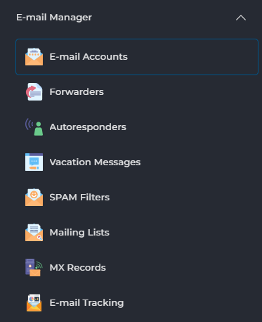 In DirectAdmin ga je naar E-mail Manager en klik je op E-mail Accounts: