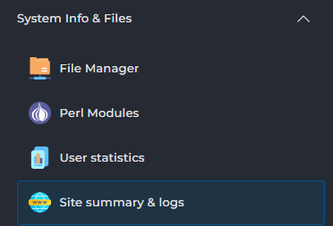 Kies in directadmin links onder System info & files voor Site summary & logs: