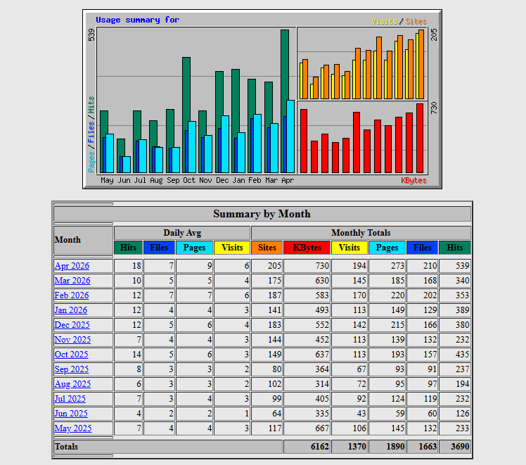 Hier worden de statistieken van de gekozen website getoond. Door het klikken op een van de getoonde maanden kan er gedetailleerde informatie per maand worden opgevraagd: