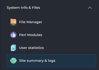 Kies vervolgens links onder System Info & Files kiezen voor Site Summary & Logs: