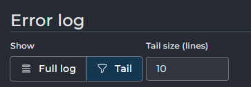 Op het volgende scherm kies je vervolgens voor Full Log als je alles wilt bekijken of kies je voor Tail als je een bepaald aantal regels wilt terugzien.
