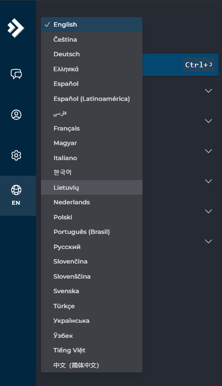 Hier kies je vervolgens aan de linkerkant voor het onderste symbool waar je dan de taal kunt kiezen die je zou willen instellen: