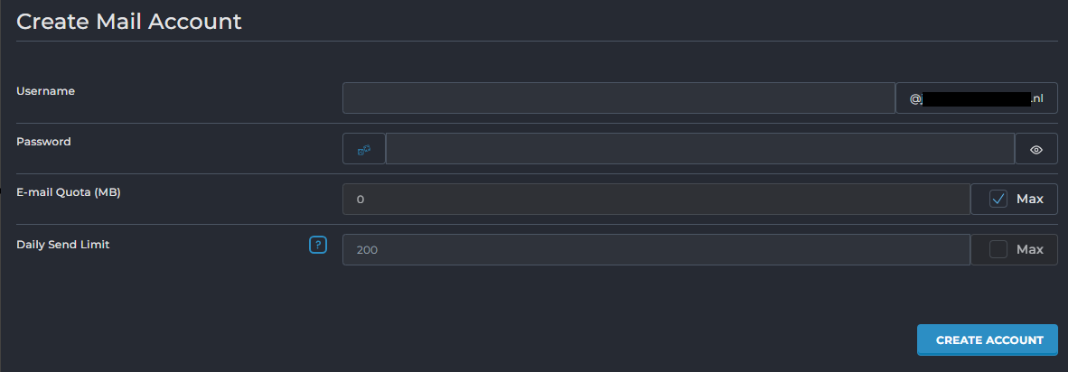 Daarna kies je onderin voor Create account om de mailbox aan te maken.