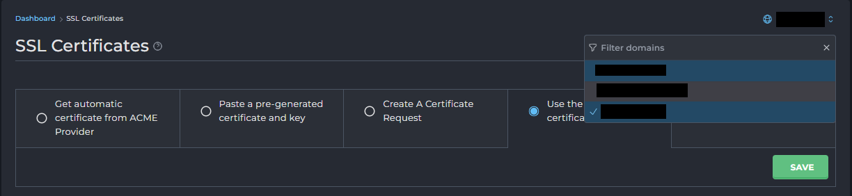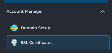 Vervolgens kies je links onder Account Manager voor SSL Certificates: