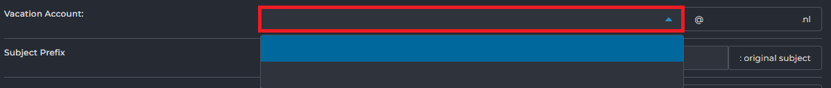 Kies bij Vacation Account het e-mailadres waarvoor je de melding wilt instellen.