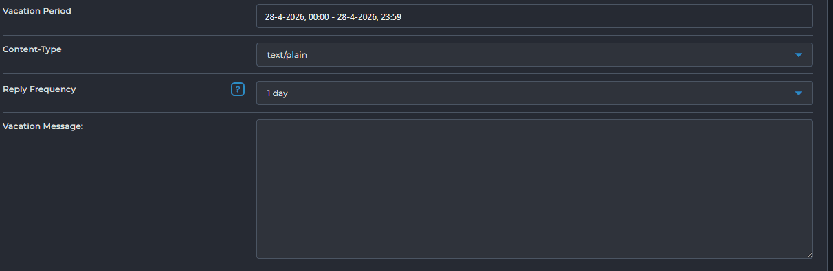 Met Reply Frequency geef je aan hoe vaak iemand jouw automatische antwoord ontvangt bij meerdere e-mails binnen korte tijd.