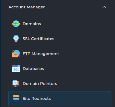 - Klik vervolgens op Site Redirects
